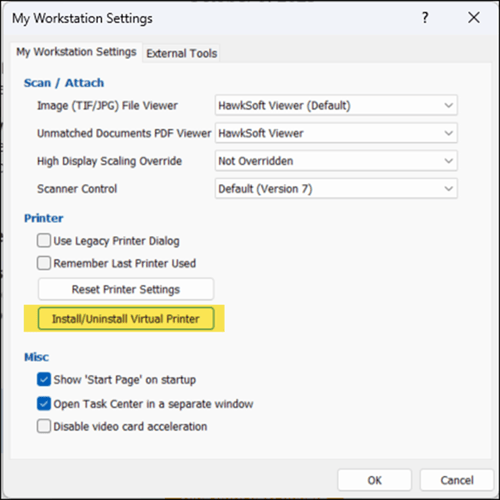 - Go to My Workstation Settings and click Install/Uninstall Virtual Printer