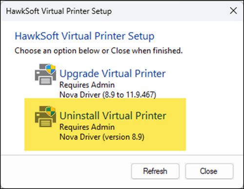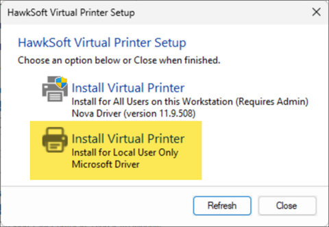 HawkSoft developers have added another Printer Driver for HawkSoft 6 to use. Follow the instructions below to uninstall the affected HawkSoft Virtual Printer Driver and install the Microsoft Driver.